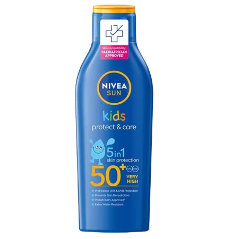Let your little ones enjoy the sun safely with NIVEA SUN Kids Protect & Care Sunscreen Lotion SPF50+. Specially created for children's delicate skin, this fast-absorbing formula delivers immediate and long-lasting protection against UVA and UVB rays. It helps prevent sunburn and long-term skin damage while providing deep hydration to support the skin’s natural barrier.